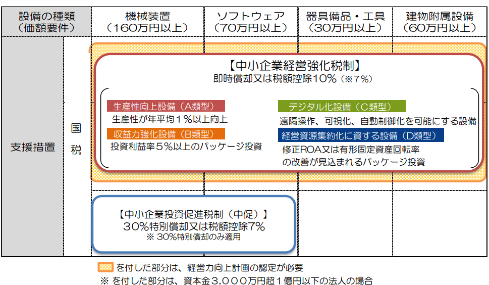 ※税制措置・金融支援によって対象となる規模要件が異なります。