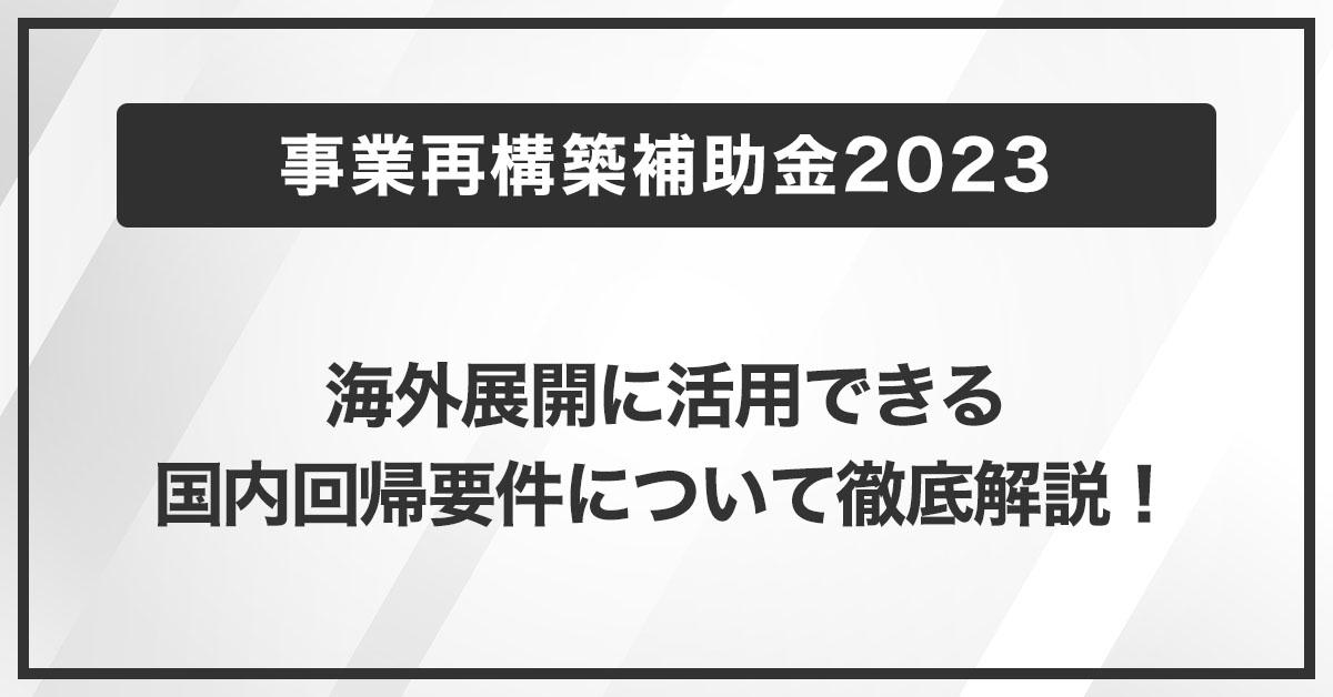 【事業再構築補助金】海外展開に活用できる国内回帰要件について