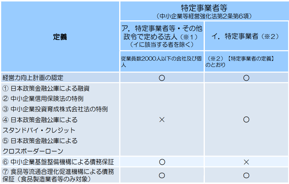 経営力向上計画に申請可能な事業者は、以下に当てはまる「特定事業者」になります。