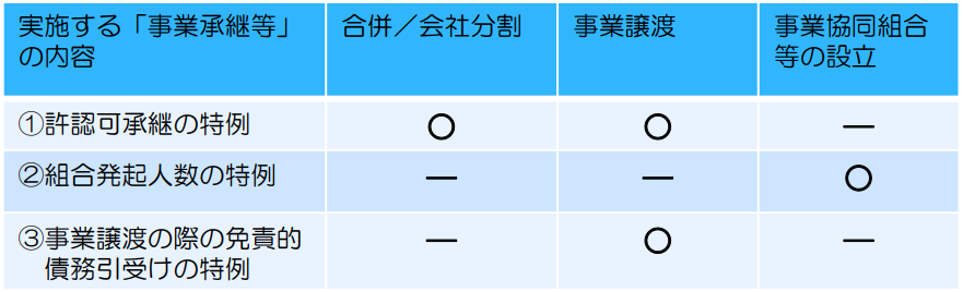 (中小企業庁HPより)※①は事業譲渡を行う場合であって、②は承継される側の特定事業者が株式会社であるときに限られます。