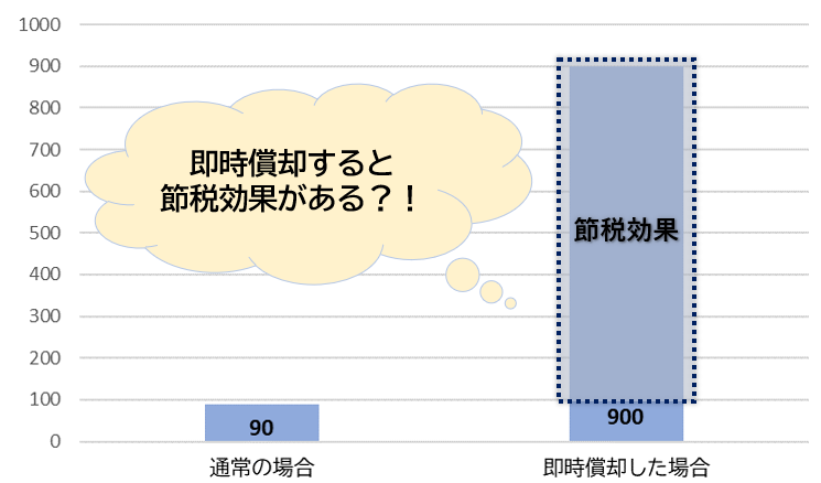 即時償却することで、利益を縮小して節税につながり、キャッシュフローに余裕を持たせることができます。