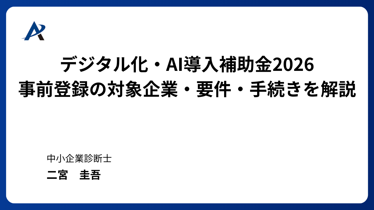 本記事では「デジタル化・AI導入補助金2026」の事前登録について解説しました。