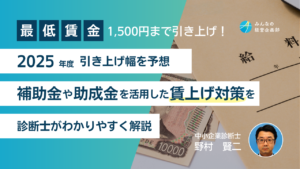 - 最低賃金の政府目標は2020年代に1,500円まで引き上げ!2025年度最低賃金改定、中小企業への影響、補助金や助成金を活用した対策を診断士が解説