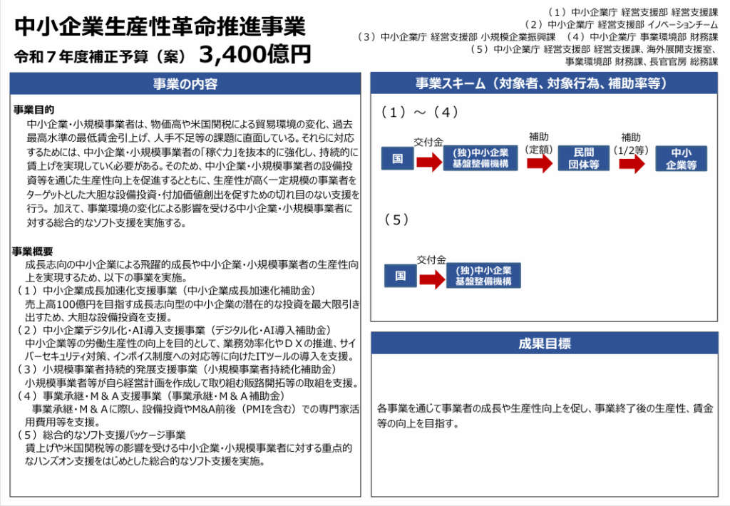 中小企業庁「令和7年度補正予算案の事業概要(PR資料)」