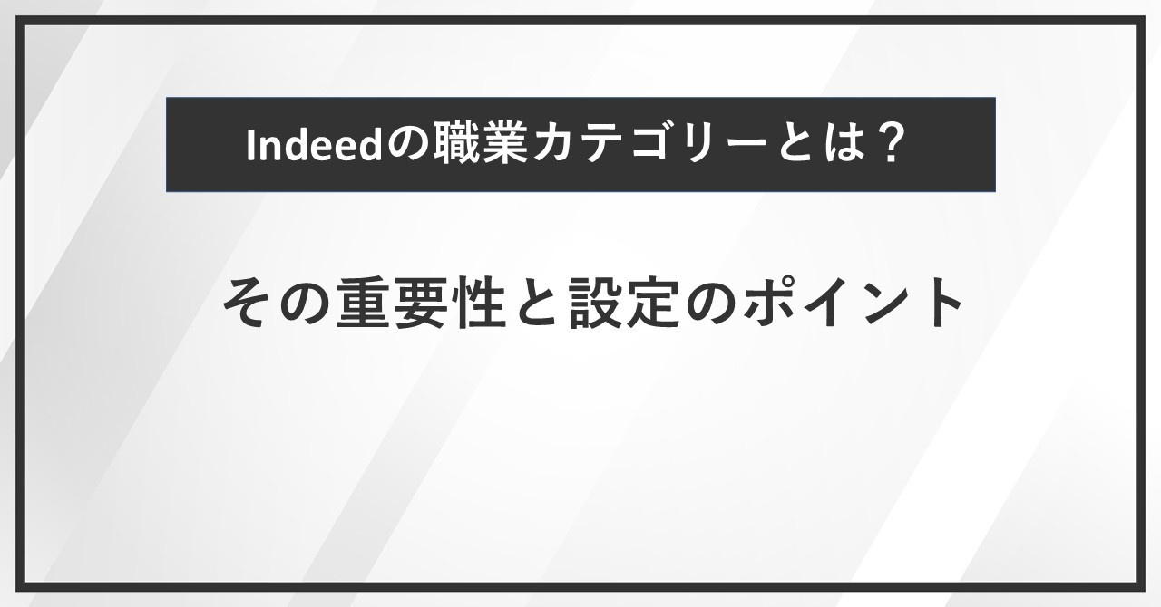 - indeedの職業カテゴリーとは?その重要性と設定のポイント