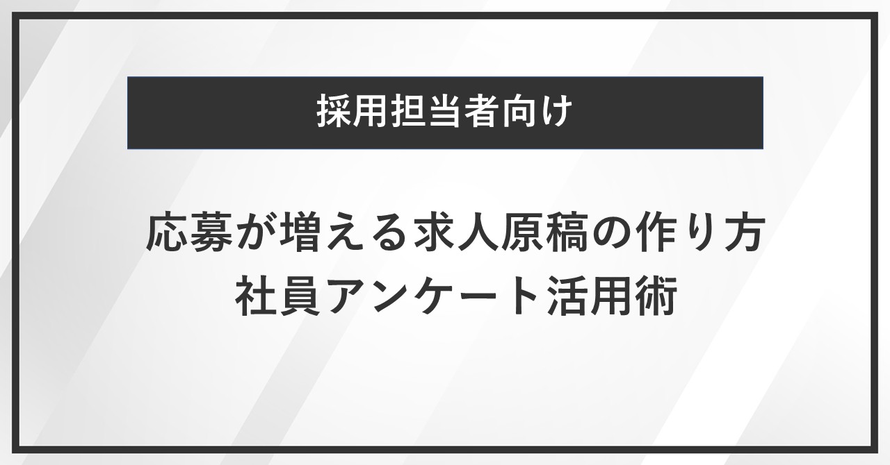 - 応募が増える求人原稿の作り方|社員アンケート活用術【採用担当者向け】
