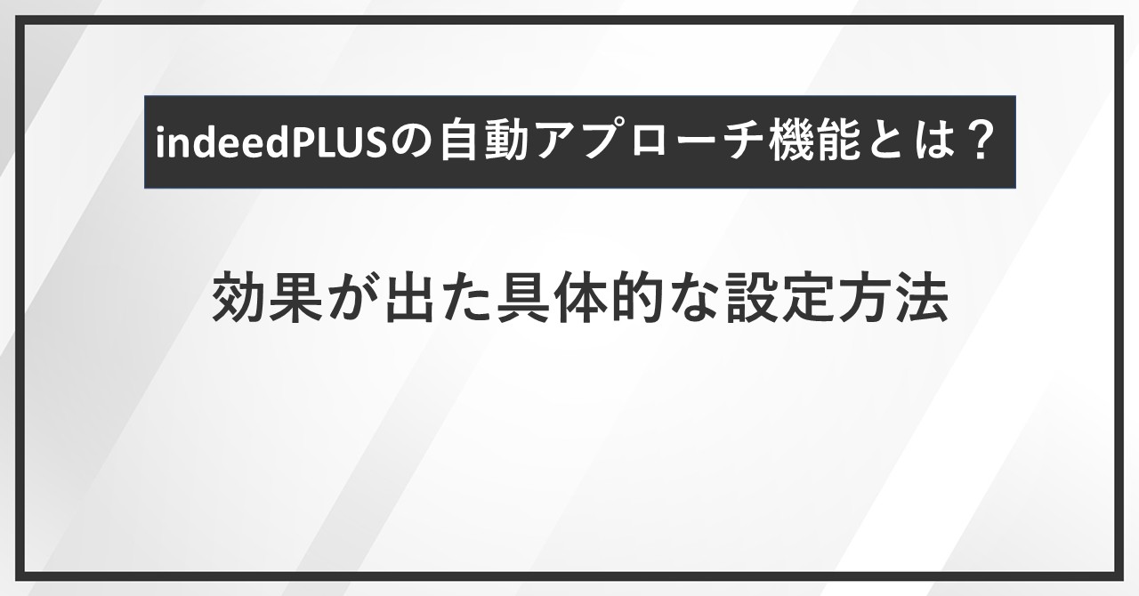 - indeedPLUSの自動アプローチ機能とは?早速効果が出た具体的な設定方法