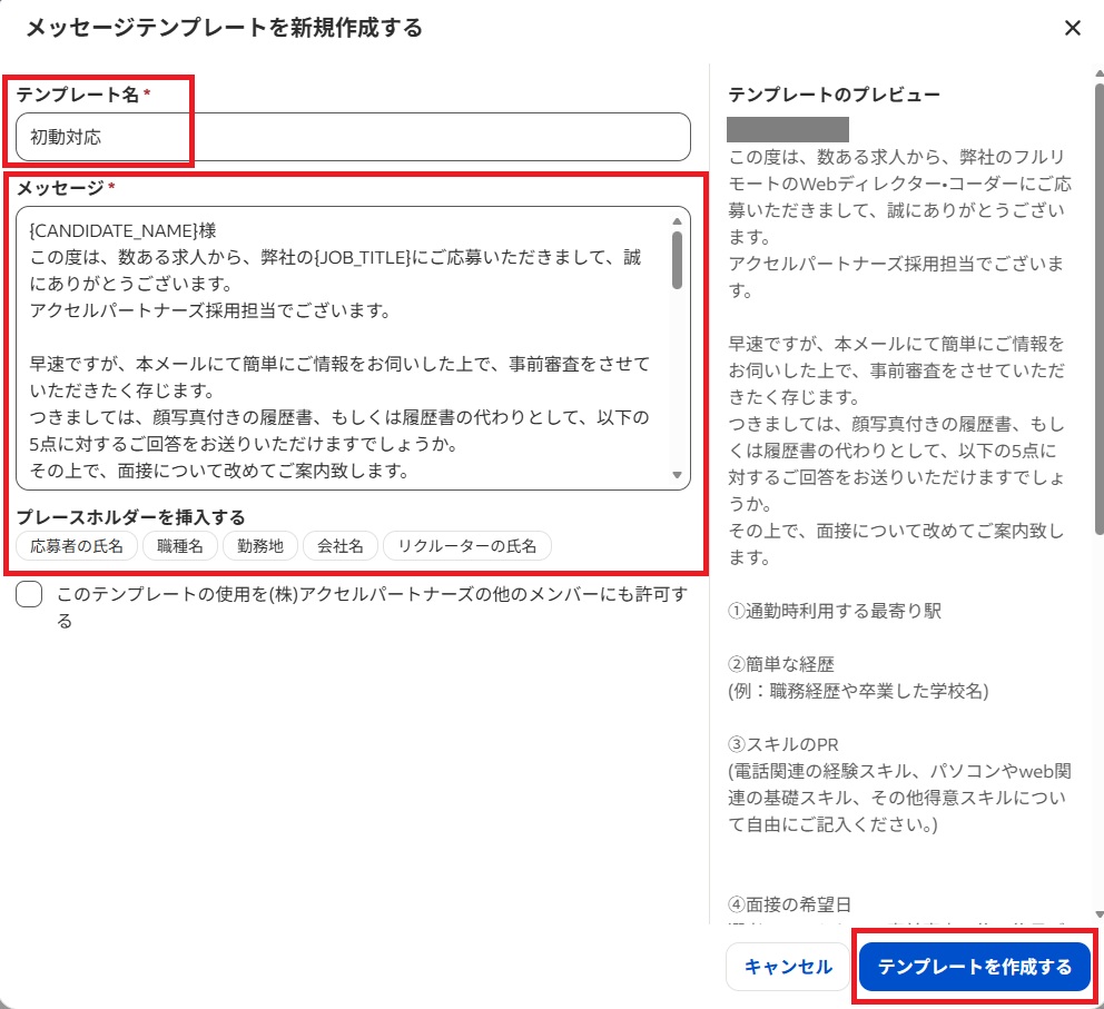求人を掲載したら、応募が入る前に以下のテンプレートを準備しておきましょう。