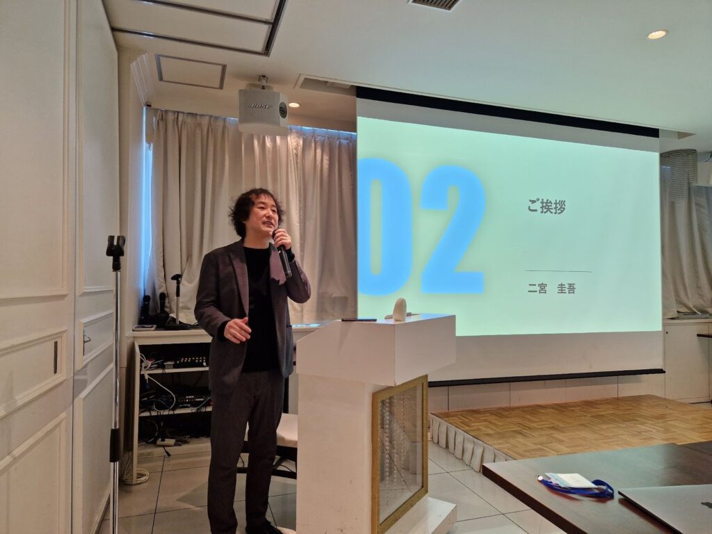 続いて、アクセルパートナーズ・二宮代表のあいさつ。