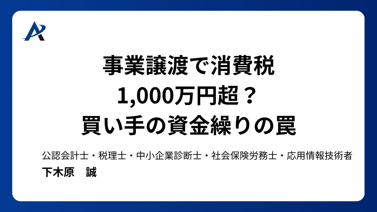 - 事業譲渡で消費税1,000万円超?買い手が見落とす資金繰りの罠
