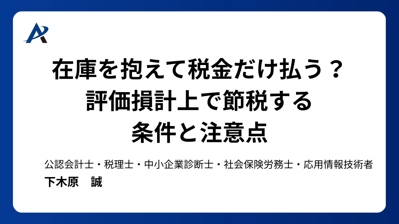 - 在庫を抱えて税金だけ払う?評価損計上で節税する条件と注意点