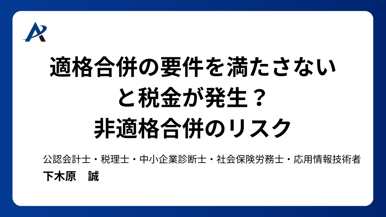 - 適格合併の要件を満たさないと税金が発生?非適格合併のリスク