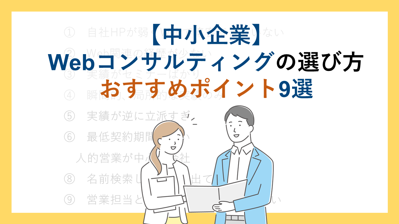 今回は、Webに詳しくない会社さんや事業者さん向けに、失敗しないためのWebコンサルタント選びチェックポイント9選をご紹介します。