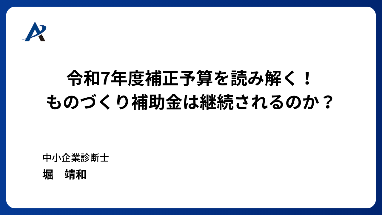 令和7年度補正予算を読み解く! ものづくり補助金は継続されるのか?