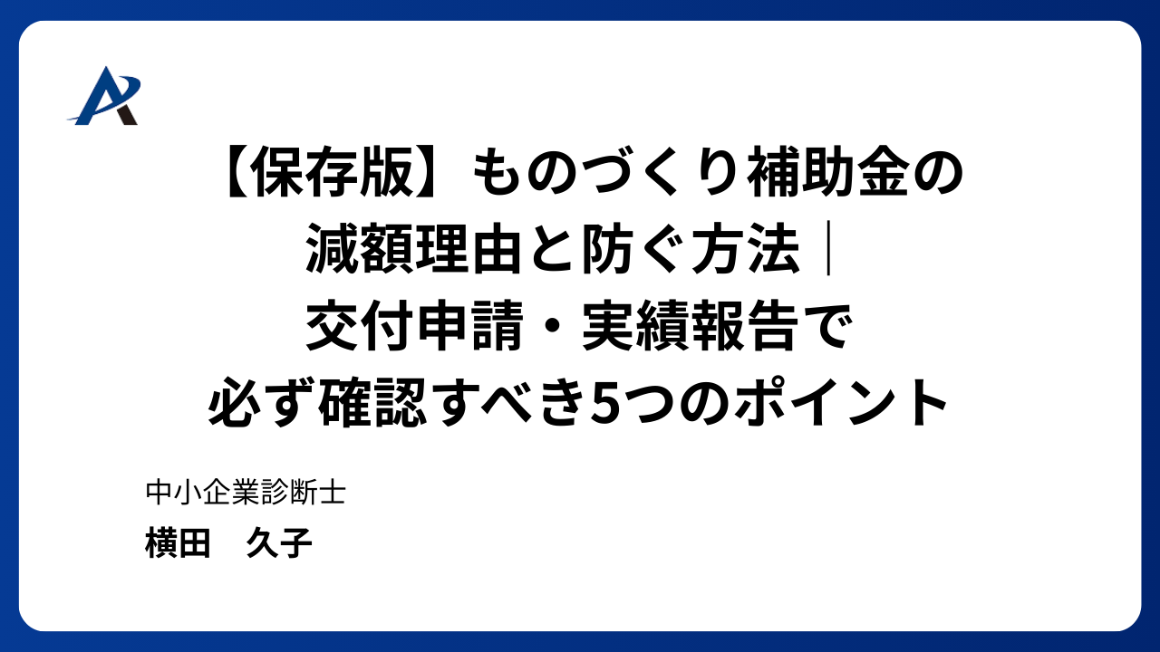 【保存版】ものづくり補助金の減額理由と防ぐ方法|交付申請・実績報告で必ず確認すべき5つのポイント