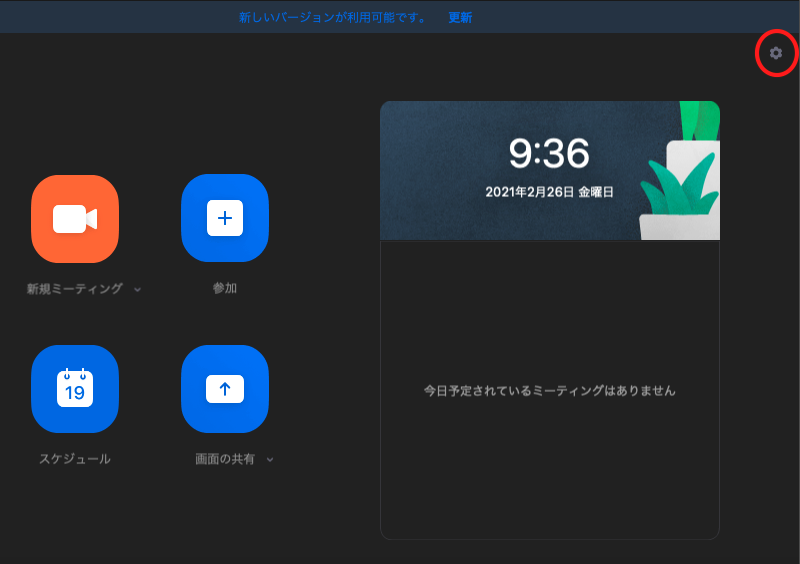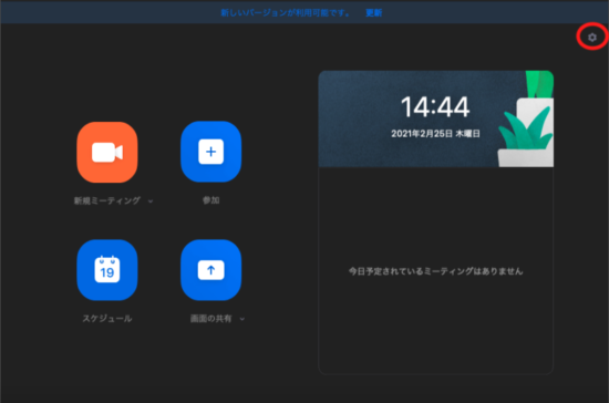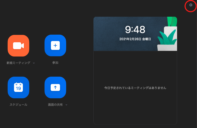 ①ZOOMのアプリを開いて赤丸で囲んだアイコンをクリック