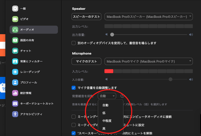 それでも抑えられないキーボード音はZOOMの設定で抑えられる。設定方法はこちら